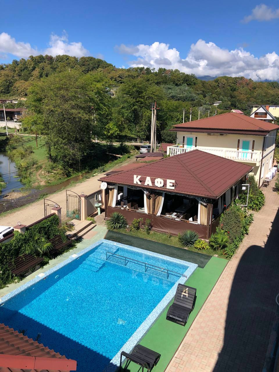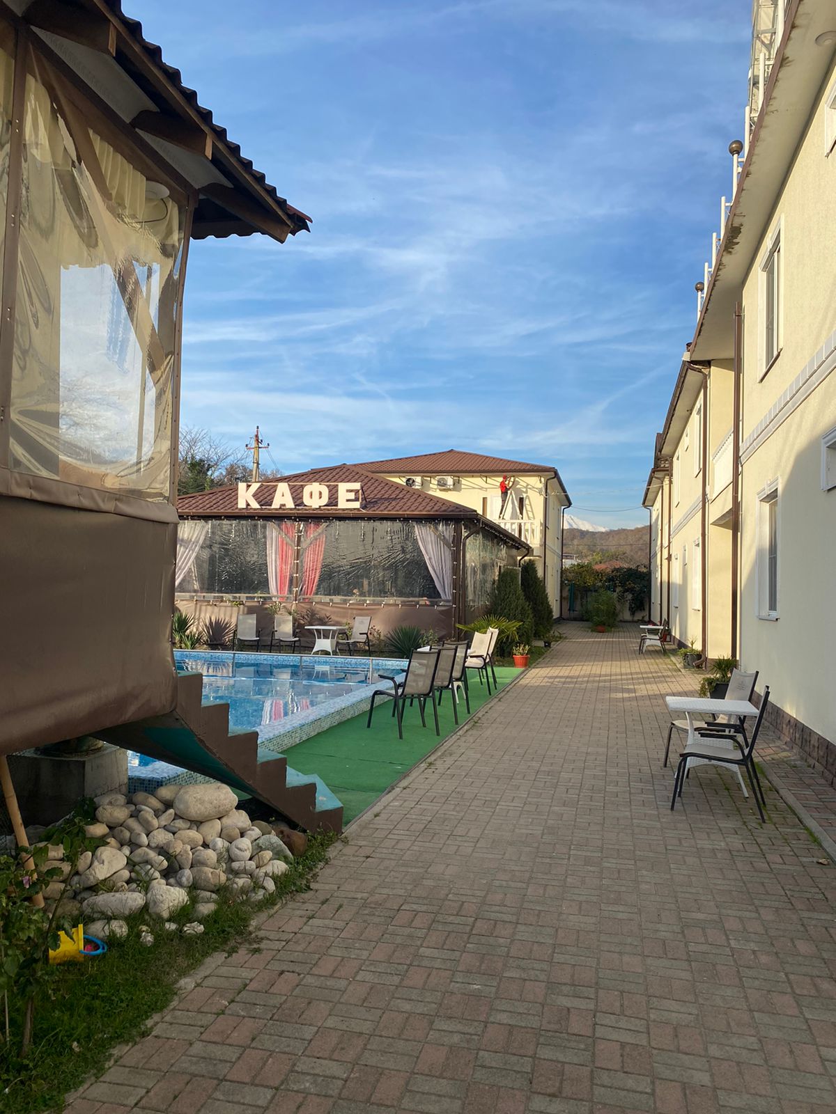 Отель Пальма расположен на мысе Пицунда в живописной Золотой бухте, где вода считается самой чистой на побережье Черного моря. Окрестности отеля окружены уникальной природой: пицундские сосны, самшитовые рощи, виноградники и фруктовые деревья. До Международного аэропорта Сочи - 65 км, до железнодорожной станции Гагра - 23 км. В шаговой доступности остановка общественного транспорта и магазин продуктов. Пляж в нескольких минутах ходьбы. В отеле 32 комфортабельных номера со всеми удобствами: телевизором, кондиционером, шкафом, холодильником и собственной ванной комнатой. Гостям предоставляется постельное бельё и полотенца. К услугам гостей СПА, иглотерапия, массаж, парикмахерские услуги, организация экскурсий, программы по зимнему отдыху. Для активных гостей доступны прогулки на катерах, САПах, вейкбординг, виндсерфинг и другие виды водного спорта. Также возможна организация йога-туров, направленные на восстановление тела и души, рыбалка на море и горных реках и озерах, увлекательная охота в лесах и горах Абхазии. На территории Отеля находится подогреваемый бассейн , кафе и просторный зал (150 кв.м.) на третьем этаже одного из корпусов, с отличными видовыми характеристиками, для проведения спортивных, развлекательных мероприятий, деловых встреч , семинаров и ретритов.